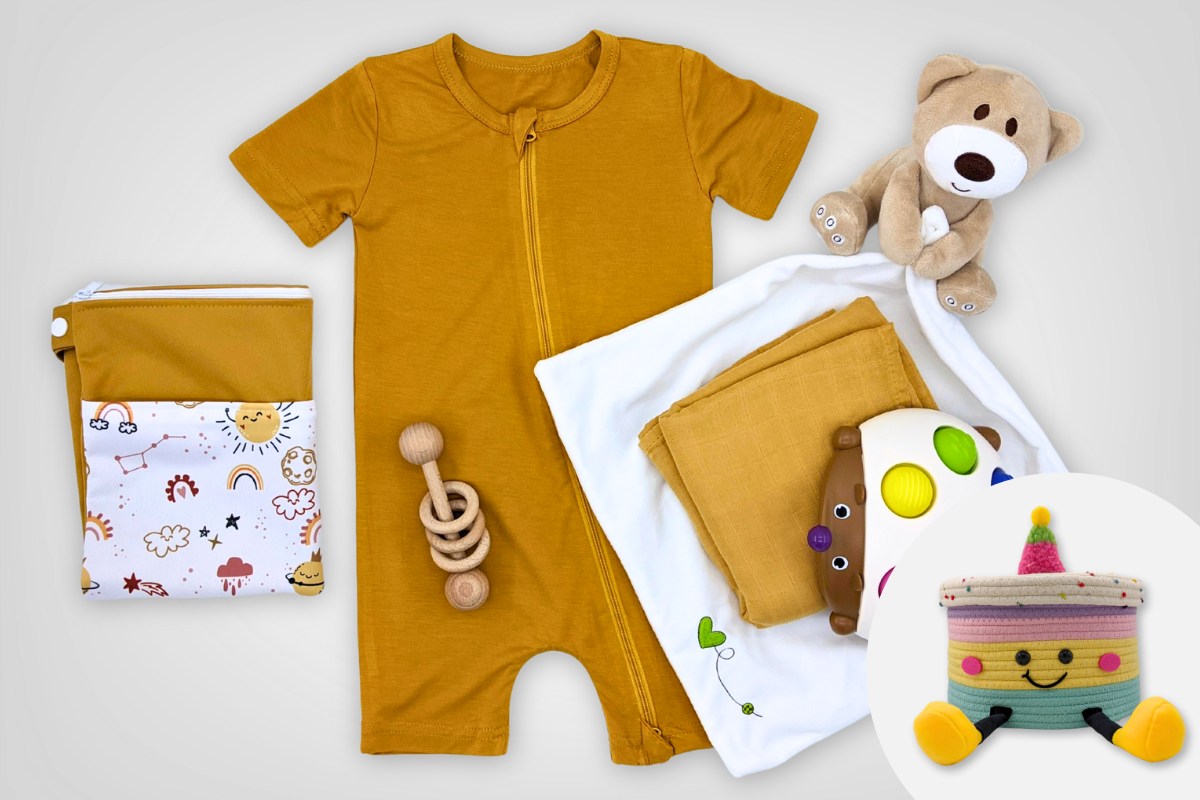 Brighten a newborn’s early days with the Dawn Hamper (Personalised) – a radiant baby hamper of comforting and sensory essentials, thoughtfully curated with warm tones and personalised touches. Designed for snuggles, play, and practicality, this hamper is a heartfelt baby gift that celebrates life’s sweetest beginnings with love, warmth, and joy.