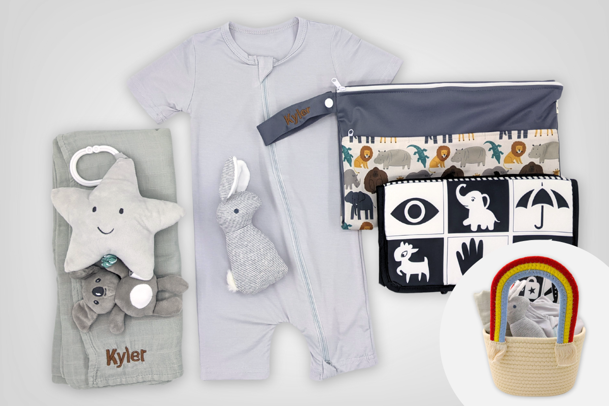 This baby hamper comes with the option of name embroidery, allowing you to personalise it with your little one’s name or any text of your choice. Name embroidery will come in a single font, font colour and font size as shown in the photos.