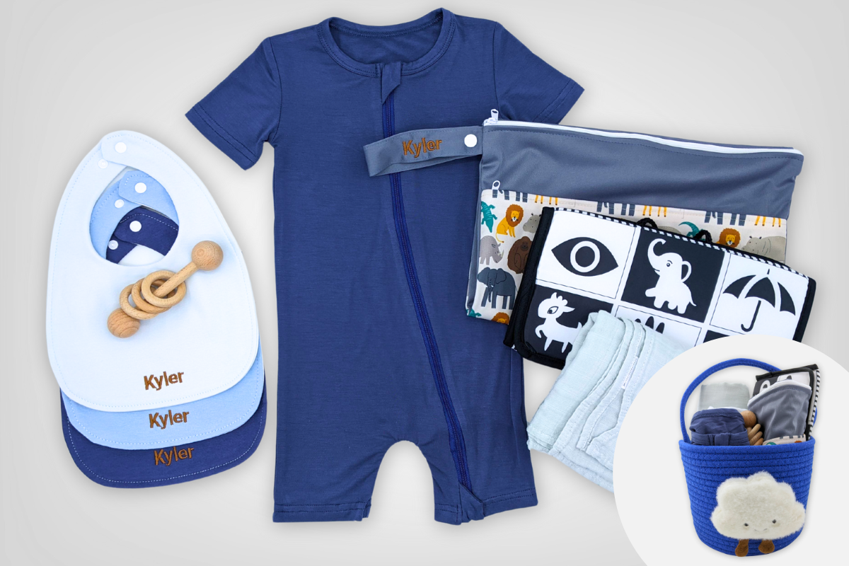 Presented in a Blue Woven Basket with a sweet cloud design, the Starlight Safari Baby Hamper (Personalised) is both practical and charming, doubling as nursery storage. Filled with soft, personalised essentials and playful touches, this newborn hamper blends comfort, style, and keepsake-worthy charm – the perfect baby gift to welcome a little one.